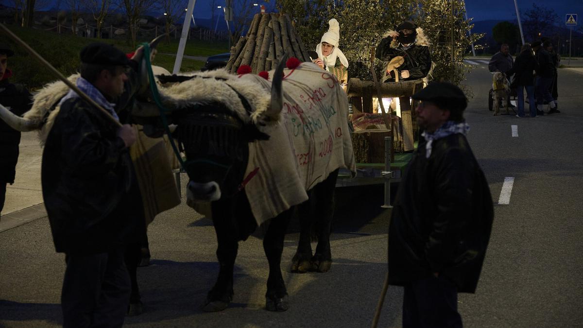 Por ejemplo, en Zizur Mayor el carbonero fue recibido poco antes de las seis de la tarde en la trasera de la plaza de los Fueros, junto al antiguo Ayuntamiento, y de ahí partió en kalejira hacia la urbanización.
