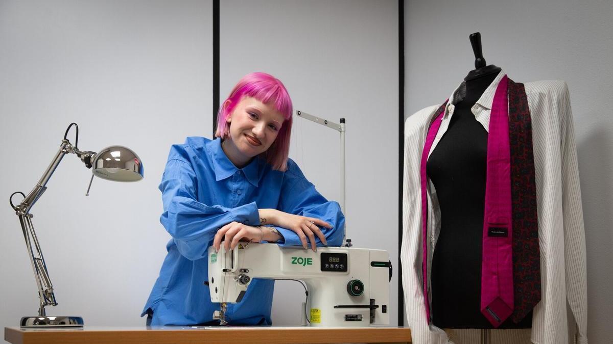 “Siendo de Pamplona, ¿no te miran raro por vestir así?”. Ainhoa Escalada, una joven diseñadora de moda de Burlada, cuenta que su pelo rosa –aunque, hace unos días, naranja– y su estética extravagante suelen dar mucho de qué hablar allá por donde va. A la pregunta de si siente miradas críticas a su paso, ella contesta: “No lo sé, porque ya no me importa”. A sus 21 años, además de haber participado como ayudante de vestuario para C. Tangana y haber sido la vestuarista de varias funciones de teatro –entre ellas, Torcidxs, una obra de Las Nenas candidata en cuatro categorías de los Premios Max–, Ainhoa ha desarrollado un concepto de moda que rompe con los esquemas y apuesta por prendas “capaces de trasladar a quien las observa a un imaginario profundo”.