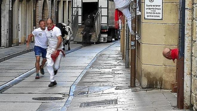 El encierro del viernes de fiestas de Estella no se alargó. No hubo motivos de seguridad como el robo de tablones de otras ediciones, ni la vuelta de las vacas que se eterniza especialmente el primer encierro. Con todo, la gran cantidad de jóvenes colapsó la estrecha cuesta de Entrañas y las vacas se volvieron una vez. A la segunda, las vacas de Macua atravesaron la barrera humana en dirección a la plaza donde las recogió el camión que las puso en marcha.