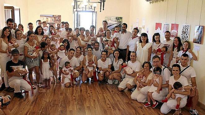 Llegó el turno después para 22 niñas y niños nacidos entre agosto de 2022 y agosto de 2023, tanto residentes en la localidad como en unión con ella por diferentes motivos. En castellano, el alcalde, en euskera, el concejal, Unai Burguete, agradecieron el gesto de conservar el vínculo con Aibar a padres y madres que se estrenaban o repetían en la imposición de pañuelos como bienvenida oficial. “Gracias por no romper el cordón umbilical con Aibar/Oibar. Sois nuestro futuro y esperamos que transmitáis el cariño que sentís por el pueblo”.