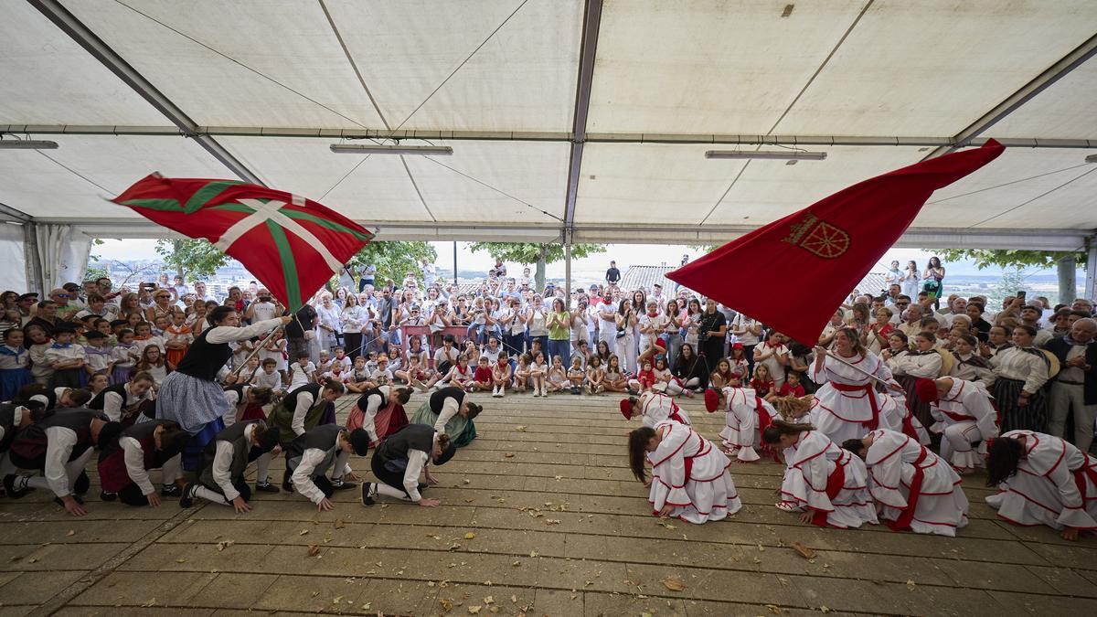 Los Mayordomos y Mayordomas han abierto el acto de danzas, que a continuación ha tenido la actuación de los conjuntos Txori Zuri y Hulargi, ambos grupos de dantzas de Berriozar. Los dos grupos han realizado sus ciclos de bailes de manera separada hasta el final, cuando se han unido todos los danzaris para cerrar el acto festivo. Entre medias, los txikis de la localidad también han danzado como sus mayores, demostrando que la cantera de dantzaris en Berriozar goza de buena salud. Maite, madre de Ibai, uno de los prometedores bailarines que se movía con gracia y descaro junto a sus compañeros, ha seguido desde primera fila los bailes: “El chico nos pidió que le apuntáramos a dantzas desde temprano, así que se podría decir que ya apunta maneras”. Quién sabe si estamos ante un futuro Mayordomo. Mientras han transcurrido las actuaciones, Mayordomos y Mayordomas han repartido viandas entre el público haciendo honor a su nombre.