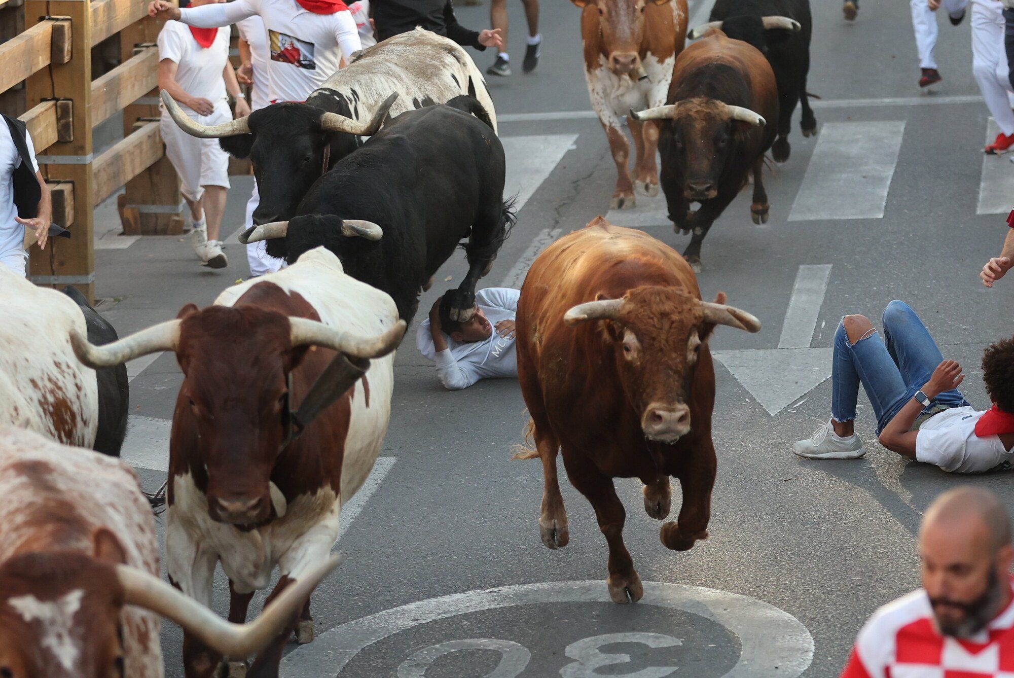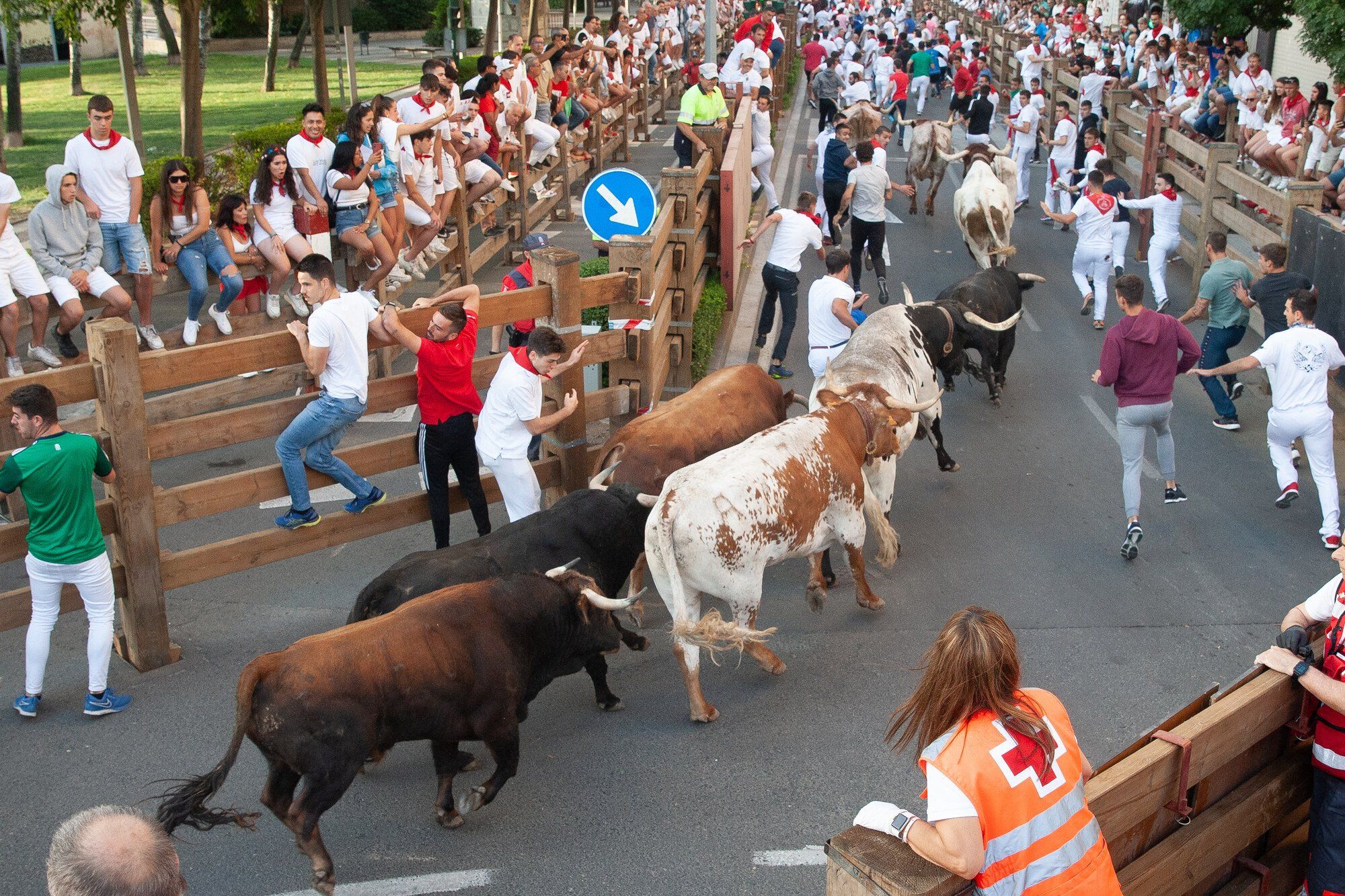 Imágenes del primer encierro de las fiestas de Tudela, protagonizado por la ganadería Marqués de Quintanar.