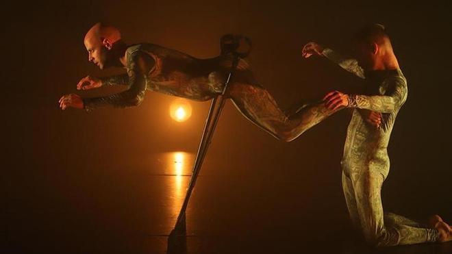 Todo excepcionalmente manejado. Hay un sonido ambiental que va desde la honda respiración, hasta un magma indeterminado que crea atmósfera con la luz y el humo de escena. El comienzo es fantástico: sobre su lenta moto-silla, y por los efectos de la luz, Dvir parece volar entre nubes, metáfora y sueño, sin duda, del que no puede andar. Al aparecer Navot, el sueño (casi) se hace realidad. A partir de aquí, hay una tensión extraordinaria entre los dos cuerpos, con elevaciones arriesgadas y creatividad continua. El cuerpo más pasivo se encumbra. El más activo, hasta usa una muleta para ir, en simetría, con el otro. Las figuras, siempre en movimiento sobre la pequeña moto-silla, se turnan con la danza con muletas. Todo bien ligado, sin brusquedad, con cada movimiento –por razones obvias–, milimétricamente estudiado, perfectamente compenetrados. Los dos cuerpos, en las distintas posiciones; sobre las rodillas, abrazados, extendidos… expanden unas figuras francamente potentes. Eso sí, la moto-silla de ruedas, vacía, no deja de dar vueltas por todo el escenario; es la realidad. Y al final, recoge a Dvir, que, de nuevo se va entre las nubes. Vestuario apropiado. El público reacciona con lo que llamamos una ovación cerrada. Cerrada y sostenida por la emoción.