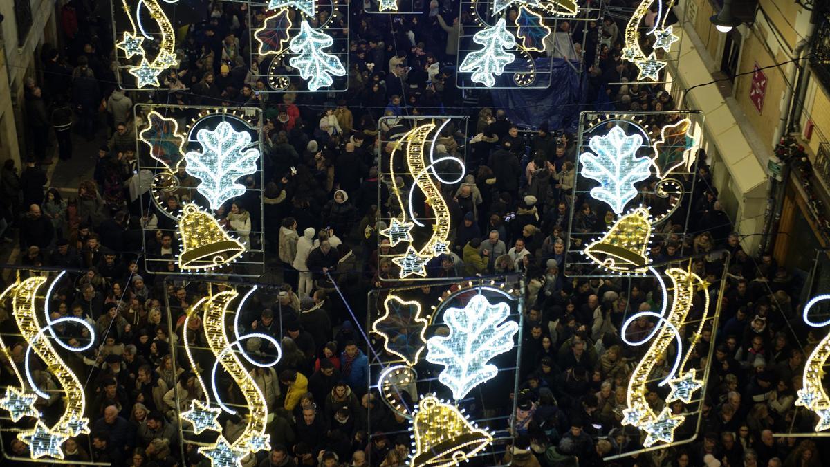 Me pasa que en cuanto encienden las luces de navidad me pongo más crítico, más bien me pongo criticón; más criticón. Y como están las calles del centro con demasiada iluminación me fijo en cosas desdeñables. Por ejemplo, analizo de urgencia el paisanaje que hace colas para sacarse una foto con un oso de ledes en Carlos III, la moda estos días, incluso entre quienes han venido de puente y olvidan un poco el selfi delante del engendro descomunal de bronce que conmemora el encierro.