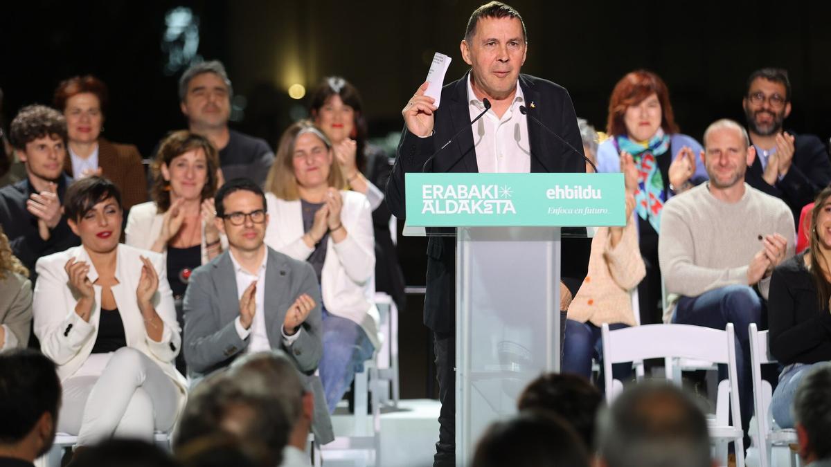 Con todo, tan atípico como lo anterior está siendo la estrategia de EH Bildu a cuenta de su perfil marcadamente plano; tanto es así que parece ajeno al pasado, y eso que sus dirigentes son los mismos de las anteriores elecciones: el ideólogo de esta etapa, el ahora candidato Pello Otxandiano, es miembro destacado de Sortu, brazo imperante en la coalición. Arnaldo Otegi hace de contrapunto electoral, casi tapando a su candidato plano, pero con la trayectoria de infausto recuerdo. Arkaitz Rodríguez, secretario general de Sortu sustituyendo a Otegi; o David Pla, último responsable de ETA antes de su disolución, ahora responsable del Marco de Orientación Estratégica y vicesecretario general tercero de Sortu. Etcétera.