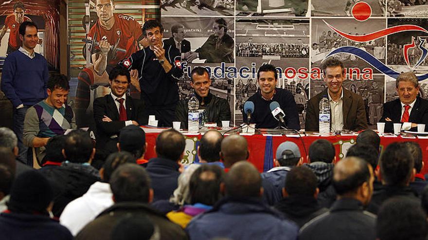 Ayer no era un día como los demás en la cárcel de Pamplona. Dos de los capitanes de Osasuna, Puñal y Miguel Flaño, visitaron el Centro Penitenciario para participar en una entretenida y animada charla con los internos. Esta actividad se enmarca dentro de las acciones que Fundación Osasuna realiza con el centro, junto con una escuela de fútbol y un partido que tendrá lugar próximamente con los veteranos de Osasuna.