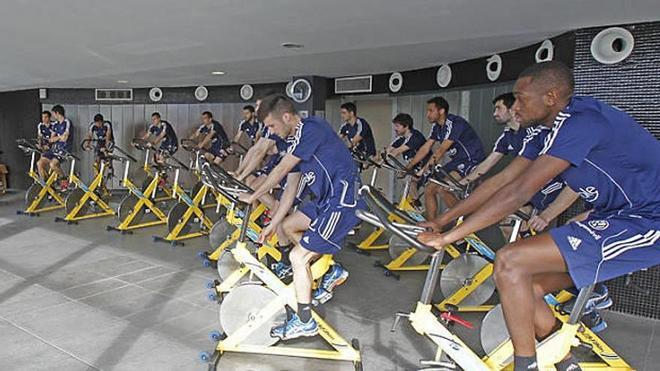 PAMPLONA. Tal y como relata el preparador físico, Juaa Solla, se trata de cambiar la rutina: "Es una forma de cambiar la dinámica de trabajo. Normalmente la primera sesión de la semana es de recuperación y hoy hemos hecho una sesión de spinning y hemos terminado en la zona de crioterapia. Se trata de cambiar la rutina y hacer una cosa distinta".