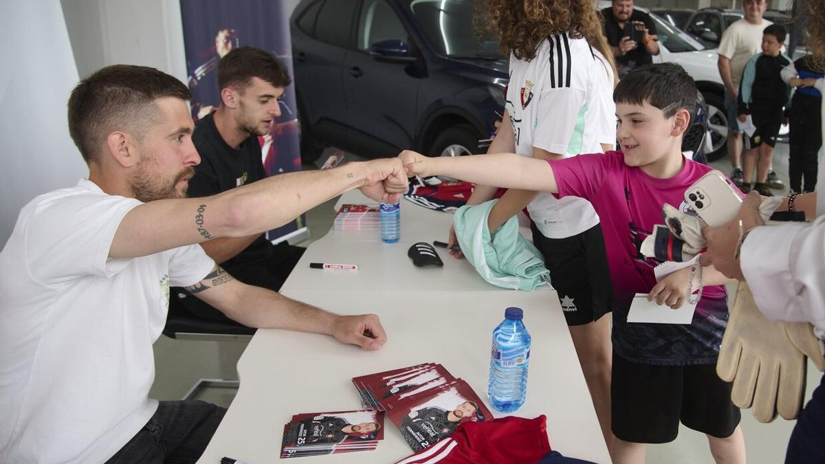 La afición de Osasuna es el jugador número 12 de la plantilla de Jagoba Arrasate. El técnico de Berriatua siempre dice que quieren que “la afición juegue con nosotros el partido” y estos aficionados nunca fallan a cualquier cita que se presenta para conocer a sus ídolos. Decenas de rojillos y rojillas se acercaron ayer por la tarde al concesionario HR Motor, donde los jugadores de Osasuna Aitor Fernández y Aimar Oroz les esperaban para hablar con ellos, firmarles autógrafos y compartir un rato con los seguidores que todos los fines de semana les observan en el terreno de juego.