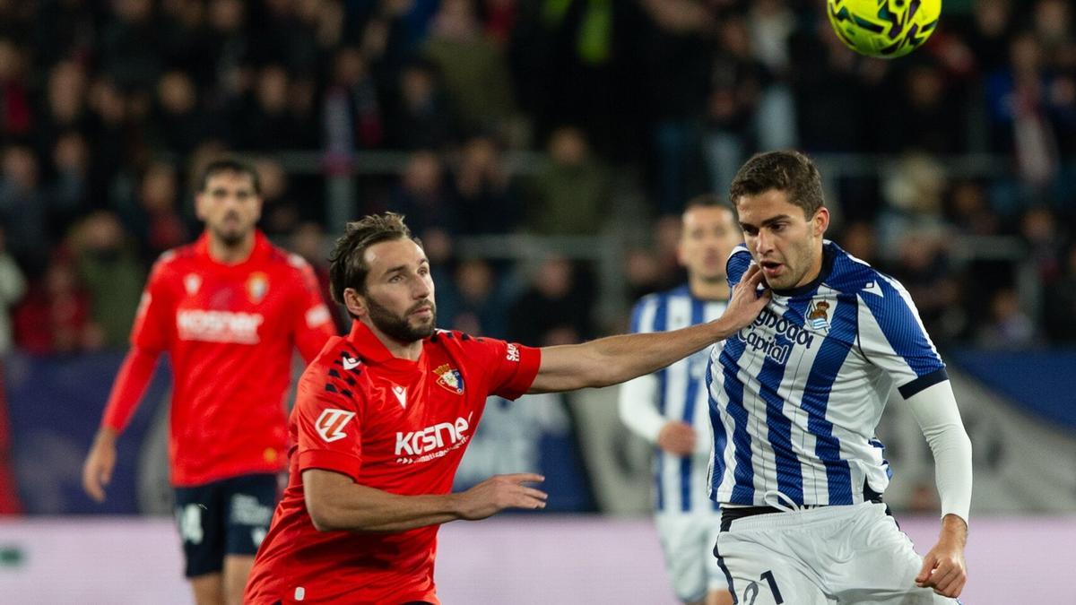 El jugador rojillo Jon Moncayola salió al paso ayer tras la derrota ante la Real Sociedad en El Sadar, la cual deja al equipo de la Comunidad Foral a un punto del descenso, a la espera de que el Girona juegue su partido.