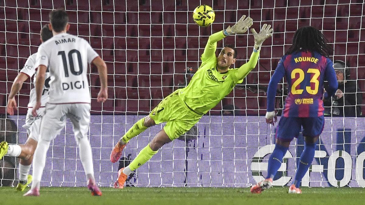 A Osasuna no le alcanzó este sábado para puntuar en el Spotify Camp Nou, donde cayó 2-0, pese a la descollante actuación de su portero, un Sergio Herrera que acumuló hasta siete paradas de mérito, seis de ellas antes de que el Barcelona se adelantara en el marcador en el minuto 70 de partido. Tampoco le bastó al conjunto navarro esa pizca de suerte que tuvo en algunos remates del rival que se marcharon fuera por muy poco, como una chilena de Ferran Torres al filo del descanso, ni la milagrosa intervención del VAR para anular un gol del propio Ferran Torres en el minuto 23 al descubrir un fuera de juego previo de Raphinha al combinar en corto con Lamine Yamal en un saque de esquina.