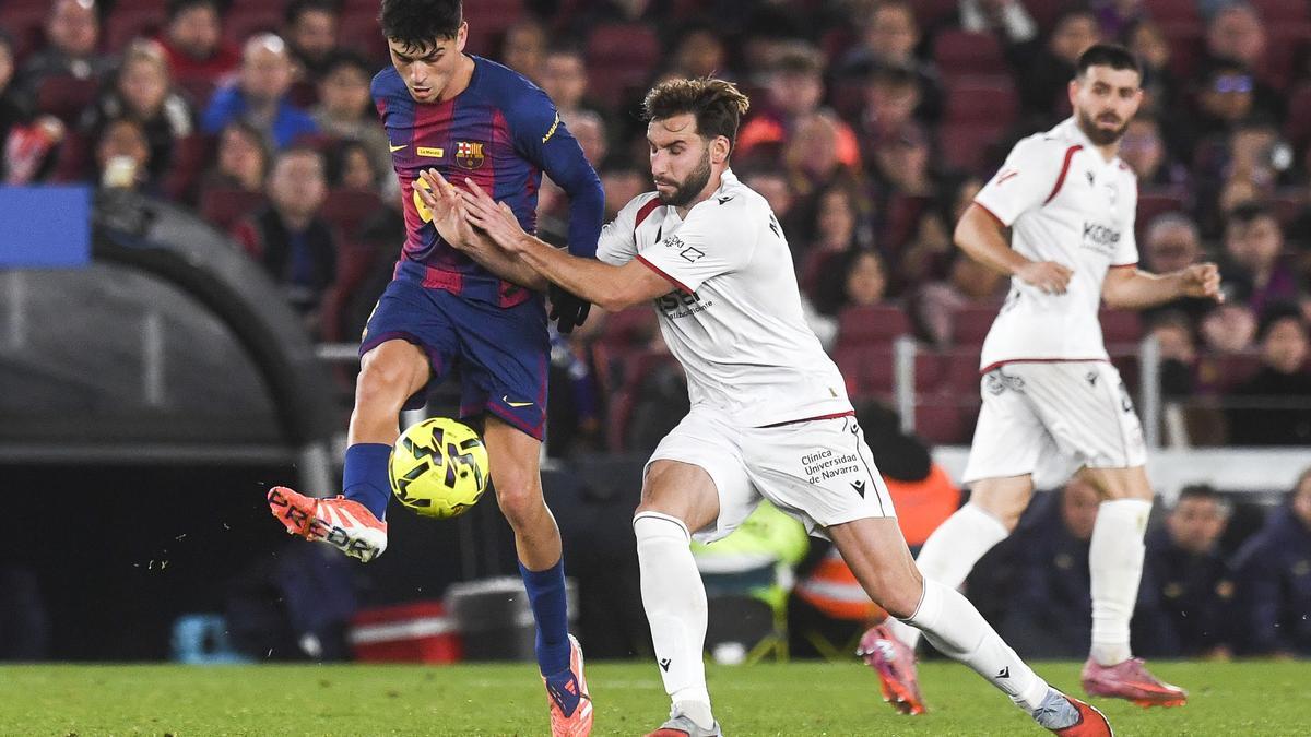 Las llegadas de Osasuna al área del Barcelona fueron escasas pero tuvieron su enjundia. Budimir remató en dos ocasiones, una tras arrancada y centro de Arguibide, y otra tras saque de banda: en ambos chuts, con poco picante, el balón encontró la respuesta de Joan García. Víctor Muñoz, por su parte, ganó una carrera desde medio campo a Balde nada más comenzar el segundo acto, pero cuando pisó el área no estuvo fino en el golpeo.