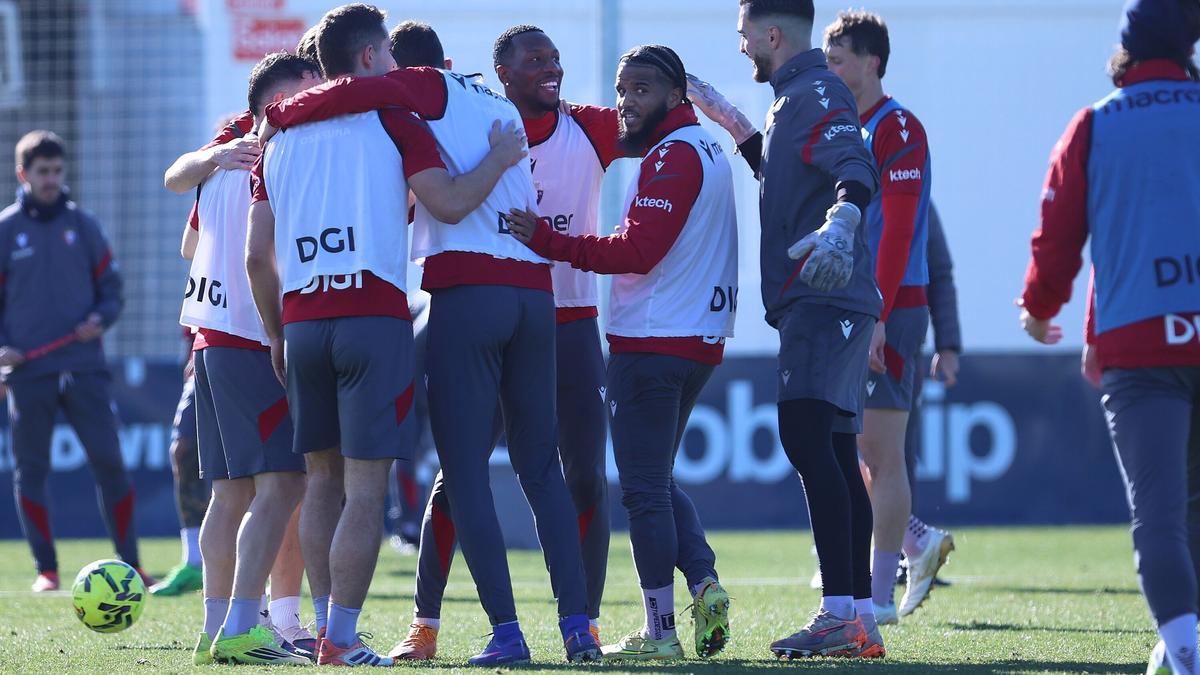 El Club Atlético Osasuna regresó este martes a los entrenamientos con una sesión a puerta abierta en Tajonar y comenzó a preparar el partido ante el Rayo Vallecano (sábado 24 de enero, 14:00 horas, estadio de Vallecas). El equipo completó una sesión que consistió en activación en el gimnasio y sobre el terreno de juego ejercicios de conservación, ataque-defensa y partidos reducidos. El ambiente en las instalaciones de Tajonar fue notablemente positivo.