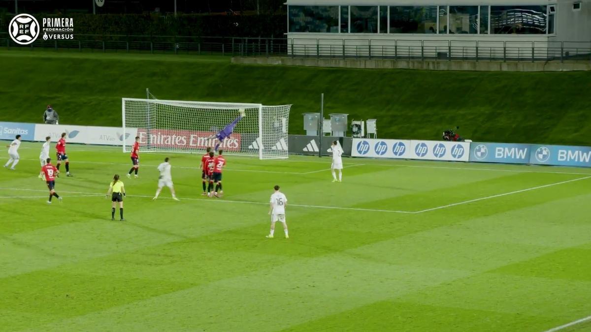 Debutó hace un mes, apenas ha disputado tres partidos en la categoría, y Rafa Fernández, portero de Osasuna Promesas, ya ha dejado paradas para el recuerdo. El canterano, clave en el último encuentro ante el Real Madrid Castilla, que se saldó con empate a uno en un duelo en el que los pupilos de Santi Castillejo terminaron con un hombre menos, ha firmado la mejor parada de la jornada 22 en Primera RFEF.