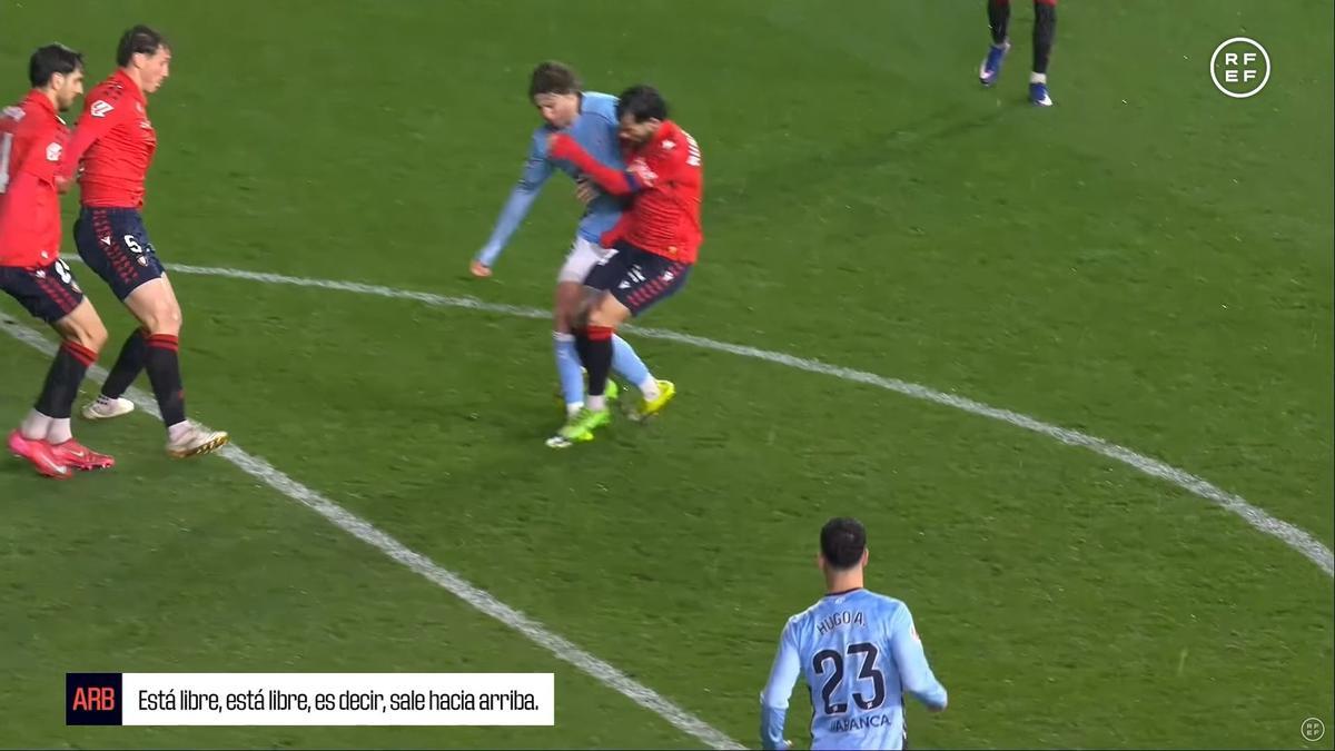 La Federación ha hecho ahora público el audio en el que los dos árbitros conversan por la jugada. Como conclusión, para Munuera Montero no hay un pisotón claro a Rubén García, dice que su pie "está libre, que sale hacia arriba", y que se trata de un "choque fortuito". Además, llama la atención que la conversación entre los dos colegiados se centra en analizar los pies de ambos jugadores para ver si hay o no contacto, pero como bien dijo el entrenador de Osasuna en sala de prensa "es falta clara del Celta porque le pisa y le da con la rodilla", pero precisamente ese contacto en el gemelo de Rubén García pasa desapercibido para los trencillas. De hecho, en la imagen que ofrecen las cámaras desde detrás de los jugadores, se observa cómo el jugador del Celta no solo pisa a Rubén, sino que también le golpea a la altura de la espinilla. Nada de eso hizo cambiar a Munuera sobre su decisión.