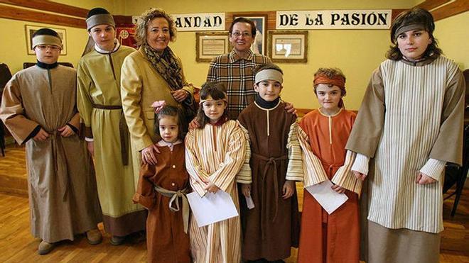 una veintena de niños de diversas edades llega al punto de la mañana al local de la Hermandad de la Pasión para vestirse de romanos. Es Domingo de Ramos y ellos forman parte del coro infantil que encabeza la primera procesión de Semana Santa.