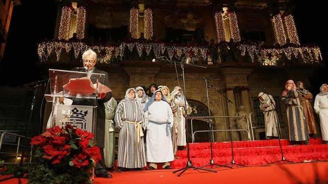 el mensaje Molins quiso aprovechar precisamente esa circunstancia para iniciar su discurso: "Ante vosotros comparece por primera vez los en los 21 años de la historia de los pregoneros navideños, un ejemplar de funcionario de una rara subespecie denominada archivero". Asimismo, durante el discurso, quiso mostrar su agradecimiento "a las personas o asociaciones que hacen posible la celebración de la Navidad", destacando, entre otros, a la Pía Unión de los Pastores de Belén, la Asociación de Belenistas, escolanías, a las parroquias, a la Cabalgata de los Reyes Magos y al Ayuntamiento. Tras desbrozar el origen de las costumbres y personajes navideños, Molins concluyó con un mensaje a los niños, "creced en sabiduría y en gracia", ya que "crecer en edad es lo más fácil".