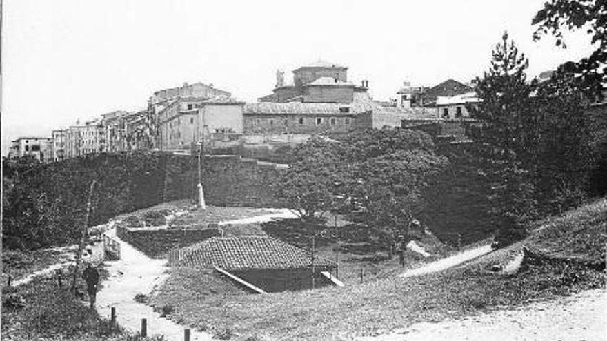 EN 1924 la vista que podía admirarse desde el ángulo nororiental de la Taconera ofrecía un conglomerado de elementos de diferente época y filiación, en un entorno accidentado y apenas urbanizado. En primer plano vemos un profundo terraplén, al final del cual discurría la Cuesta de la Estación, cuya calzada asoma parcialmente por la derecha. Un camino bien señalado desciende hacia una pasarela metálica, mediante la cual podía salvarse el pronunciado desnivel de la zona, comunicando la Taconera con el casco antiguo de la ciudad.