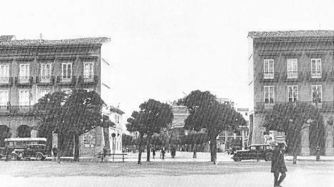 EN 1932 el frente meridional de la plaza del Castillo, allí donde arranca la avenida de Carlos III, presentaba una abertura provisional que daba salida hacia el Segundo Ensanche. Se había obtenido tras la demolición del Teatro Gayarre (antiguo Teatro Principal), derribo cuyas obras habían terminado justamente un mes antes, en febrero de 1932.
