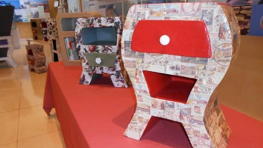 PAMPLONA. En total se muestran 16 muebles completos y uno sin terminar, de forma que las personas que se acerquen a ver la muestra podrán conocer cómo se han elaborado, fundamentalmente con cajas de bicicletas y electrodomésticos.