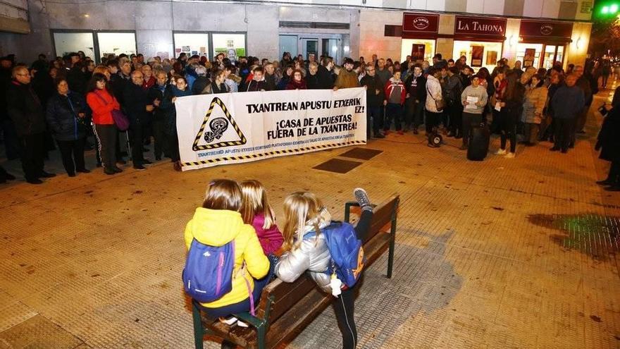 pamplona. Un nutrido grupo de vecinos de la Txantrea se concentró ayer junto al local que acogerá un casa de apuestas para protestar contra la proliferación de este tipo de negocios y pedir que se adopten medidas inmediatas, entre ellas la anulación de las licencias concedidas, como la que afecta al barrio. Más de treinta colectivos -el centro de atención Andraize, la Jai Batzorde, la Peña Armonía, las Apymas de la zona o grupos parroquiales- se han adherido a esta iniciativa vecinal, que se repite en varios barrios. Foto: Patxi Cascante