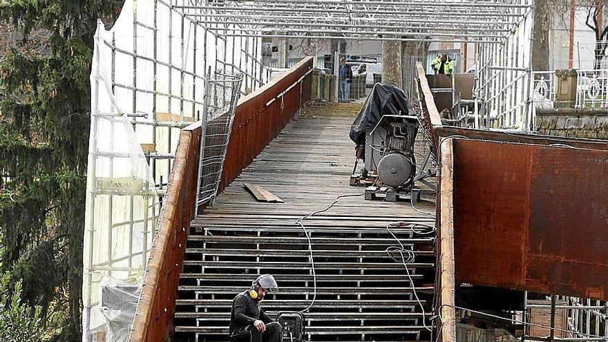 - El gasto por arreglar la pasarela del Labrit, cerrada desde 2016 por el desprendimiento de varias chapas, sigue sin detenerse. El Ayuntamiento de Pamplona se ha visto obligado a aumentar el presupuesto destinado a su reparación ante la aparición de nuevos daños durante los trabajos que se llevan a cabo en la pasarela.