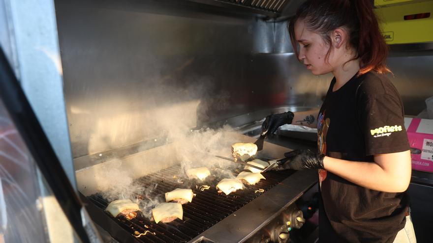 Quien haya asistido sabrá que el parque en el que suelen estar las barracas durante los Sanfermines cuenta con unos 30 puestos de comida, en los que los asistentes, después de pagar por su hamburguesa, hacen cola para recogerla.