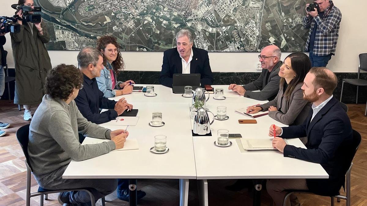 Representantes de las tres formaciones que integran el equipo de Gobierno en el Ayuntamiento de Pamplona han mantenido este jueves la primera reunión con el grupo municipal socialista para negociar los Presupuestos de 2025.