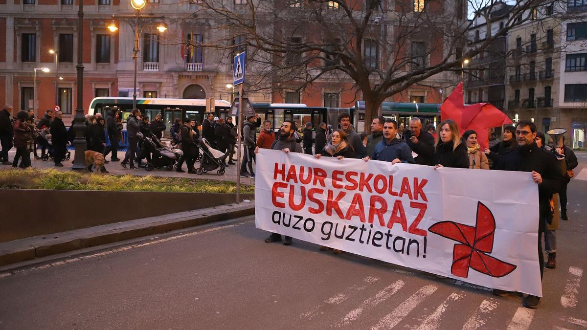 Los participantes, muchos de ellos con niños y carritos de bebé, corearon lemas en euskera en los que pedían escuelas infantiles en este idioma y reivindicaron la extensión de la enseñanza en euskera. En declaraciones a los periodistas, Asier Biurrun explicó que el de inmersión en euskera para las escuelas infantiles es “un derecho que llevamos muchos años reivindicando y creemos que un Ayuntamiento que reivindica que es del cambio debería de llevarlo a cabo”. Recordó que solo una de las 12 escuelas infantiles gestionadas por el Ayuntamiento de Pamplona es de inmersión en euskera, “una diferencia muy grande para con otros modelos”. No concretó un número de plazas necesarias, porque “más que hablar de necesidades habría que hablar de derechos. Y el derecho es el que podamos estudiar en euskera”, zanjó.