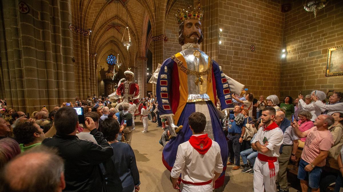 Las conversaciones mantenidas a varias bandas durante todo el fin de semana, con la mediación del arzobispo Florencio Roselló, del alcalde Joseba Asiron y portavoces municipales, han logrado que el acto oficial, con la presencia de la Corporación en Cuerpo de Ciudad, incluyera el baile de los gigantes y de los dantzaris en el interior del edificio catedralicio.