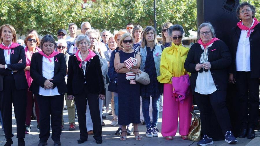 El acto de sensibilización que ha protagonizado hoy la Asociación Navarra de Cáncer de Mama, Saray, en la Plaza del Castillo de Pamplona ha estado cargado de emoción y homenajes. Pero, sobre todo, ha estado cargado de rostros anónimos que acudieron al acto para apoyar una enfermedad que los tocó de cerca.
