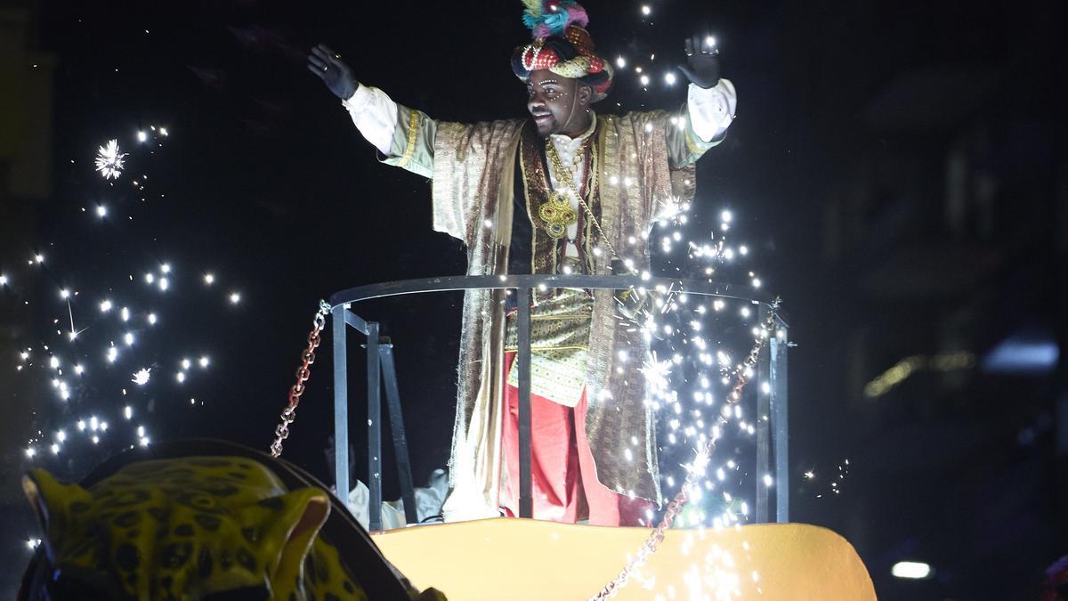 La comitiva real avanzó escoltada por carrozas temáticas iluminadas, comparsas de animación, grupos musicales y decenas de pajes que marcaron el ritmo del desfile entre los que se incluían los típicos abanderados italianos, los caballistas, la fábrica de juguetes, la Estrella de Belén o la Sagrada Familia. Las carrozas de Melchor, Gaspar y Baltasar, despertaron los aplausos del público, mientras los pajes repartieron cientos de kilos de caramelos a lo largo del recorrido.