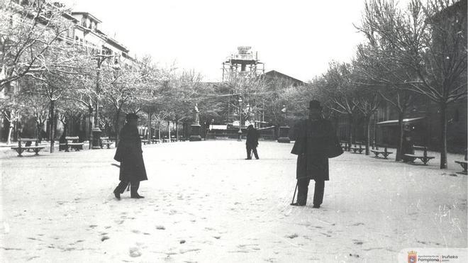 Sin embargo, una vez destituido en Madrid Germán Gamazo como ministro de Hacienda, y una vez eliminada la amenaza de extensión a Navarra de los impuestos y fiscalidad vigentes en provincias, el interés por la obra se desvaneció un poco. La suscripción popular fue decayendo en cuantía y no obtuvo la recaudación esperada, liquidándose lo conseguido con las primeras obras. Al no contar con fondos, el proyecto tuvo que ser paralizado a finales de 1898. Se discutía quien debía continuar con la financiación, si el Consistorio de la ciudad o la propia Diputación. En abril de 1900 ya se hablaba en prensa del “monumento inacabable”. Finalmente, fue Diputación quien decidió reanudar las obras, con el apoyo en la dirección de obra del arquitecto Florencio Ansoleaga.