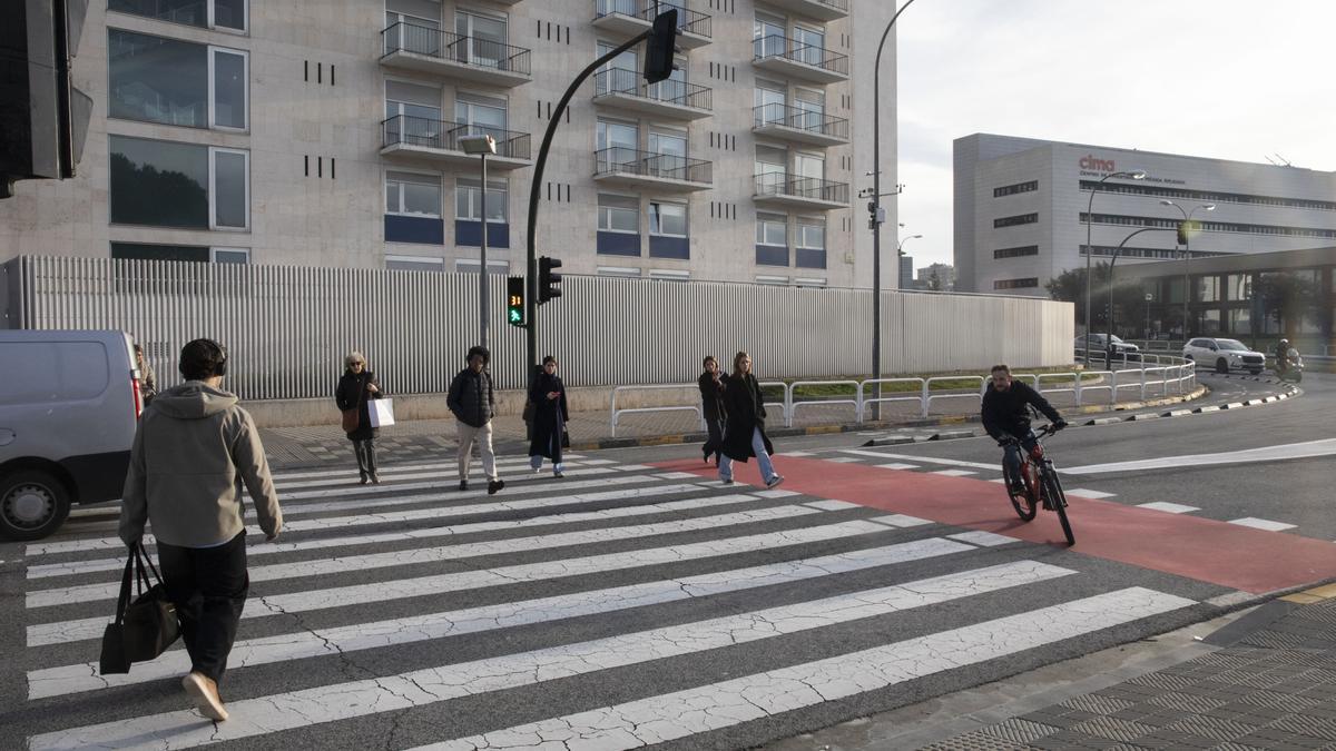 La reforma ha ampliado aceras, incorporado tres pasos peatonales elevados, implantado paradas avanzadas del Transporte Urbano Comarcal (TUC) y estrechado los carriles para calmar el tráfico. El nuevo carril bici bidireccional segregado, de 2,75 metros de anchura, incrementa la seguridad ciclista en uno de los entornos más sensibles de la ciudad: el acceso al Hospital Universitario de Navarra.