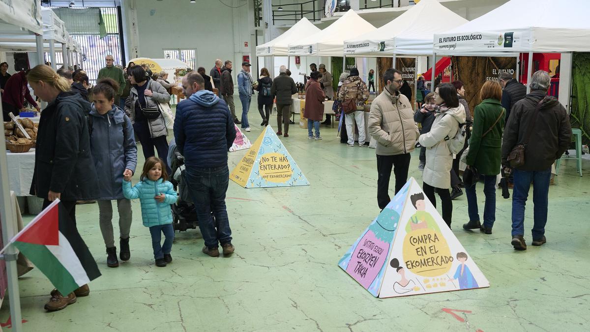 Desde hace seis años, el primer sábado de mes el producto ecológico tiene una cita en el centro de Pamplona. El Ekomercado, en la antigua estación de autobuses, ha celebrado este sábado la efeméride con brindis colectivo y aperitivo. Un escaparate y “lugar para hablar, conocer y compartir sobre la agricultura ecológica de Navarra”. Con un objetivo: “promocionar productos de calidad y ecológicos de Navarra, porque consumiendo apoyas a los productores locales y ayudas a la sostenibilidad del planeta, del mismo modo que también se contribuye a la formación de conciencia social y ecológica”, han explicado desde CPAEN/NNPEK.