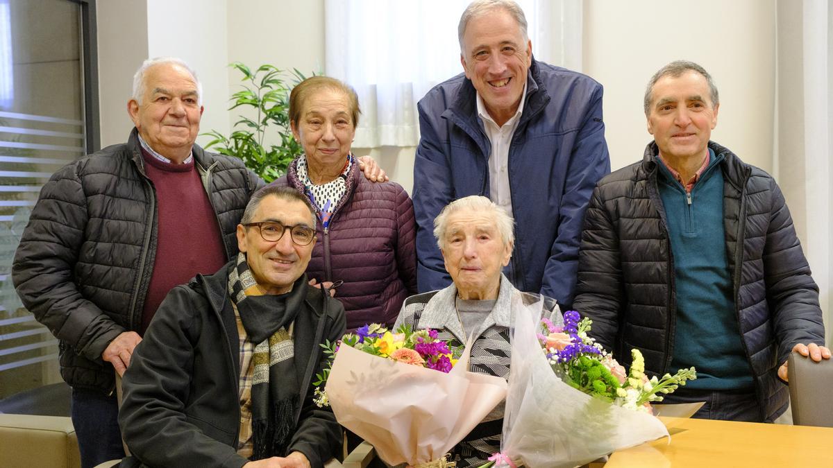 El alcalde de Pamplona, Joseba Asiron, ha felicitado este jueves a la centenaria Ángela Caño por su 101 cumpleaños. El primer edil ha acudido al centro pamplonés donde reside para transmitirle su felicitación y entregarle personalmente un ramo de flores, un pin y el pañuelo con el escudo de la ciudad, a modo de homenaje.
