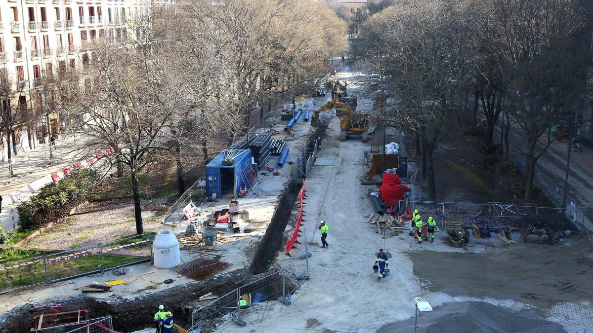 Los trabajos de reurbanización y renovación de redes del paseo de Sarasate se iniciaron en diciembre con dos catas en la calzada del vial sur para localizar diferentes redes de suministros. Después de Navidad, comenzaron ya las actuaciones con maquinaria pesada. Las obras comenzaron por el extremo oeste, el más cercano al Parlamento de Navarra, y en estos momentos ya abarcan toda la longitud del Paseo. En estos momentos, los trabajos de renovación de redes en el vial sur ya han alcanzado la calle Vinculo. En el vial norte, los trabajos se centran en el tramo entre la Iglesia de San Nicolás y la calle Comedias, habiéndose ejecutado ya la renovación de redes en el tramo entre el Parlamento y la Iglesia. Se avanza en paralelo en el andén central, donde además puede observase el vallado de protección de las zonas ajardinadas. El presupuesto de las obras asciende a 15.071.144,49 euros, con un plazo de ejecución de 18 meses, por lo que se prevé que la reurbanización finalice a mediados de 2027.