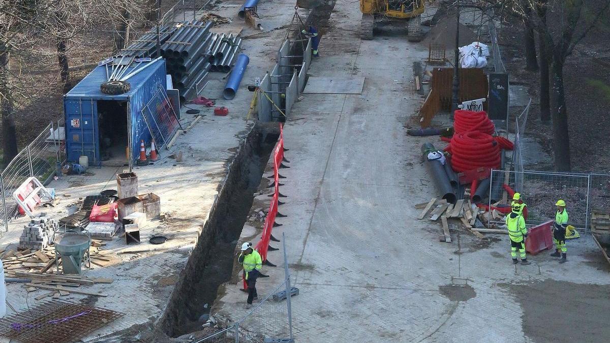 -paseo Sarasate: continúan las obras de reurbanización, renovación de redes e instalación de recogida neumática en dicho paseo. Ya no se puede circular por la calle Alhóndiga. Los vehículos que se desplacen por la zona deberán hacerlo por la calle García Castañón.