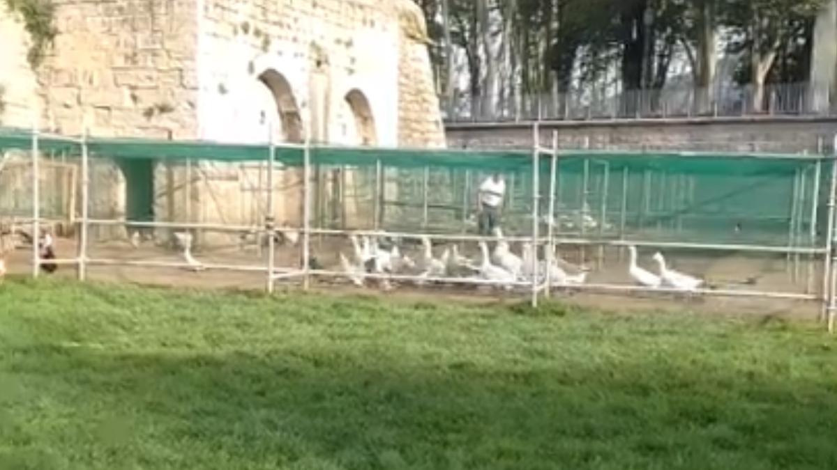 El parque de la Taconera recupera poco a poco su estampa más característica. Las alrededor de 180 aves que habitan en los fosos del emblemático jardín pamplonés, y que permanecían encerradas desde finales de noviembre por el protocolo de la gripe aviar, están siendo liberadas este martes por la mañana.