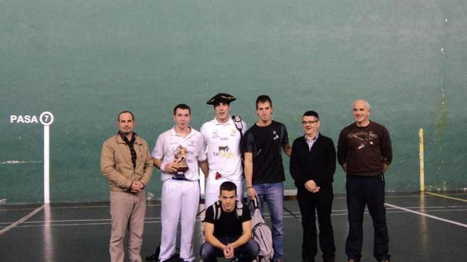 pamplona. Artutx se proclamó el fin de semana pasado vencedor del Campeonato de Sangüesa del cuatro y medio. La final la disputaron el pelotari de Leache y Garjón (en la imagen los dos pelotaris que van de blanco) el sábado pasado en el frontón Cantolagua coincidiendo con las fiestas txikis de la localidad y con la presencia de la Escuela de pelota Cantolagua. Ambos jugadores protagonizaron un encuentro muy disputado, en el que Artutx se hizo con la victoria por 22-17. El otro encuentro del festival, en el que se iba a decidir entre Rebolé y Murgiondo el tercer y cuarto puesto de este campeonato, no se pudo al final jugar por lesión. Foto: cedida