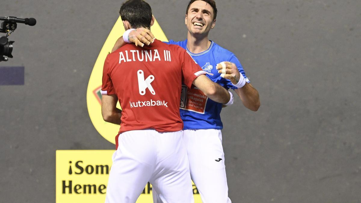 El individual es maniqueo. No hay grises. Peio Etxeberria y el guipuzcoano navegaron en Las Antípodas. El navarro, pura viveza; Altuna III, en cambio, vivió a contrapelo, bailando con la más fea, fuera de foco, peleando por domar el peloteo. Sin embargo, el zenoztarra clavó el guion: sacó bien, imprimió ritmo y cantó bingo cuando asumió riesgos. Hizo mucho daño con las cargas de profundidad por la pared y en la segunda parte del partido vistió su catálogo de oro con el dos paredes.