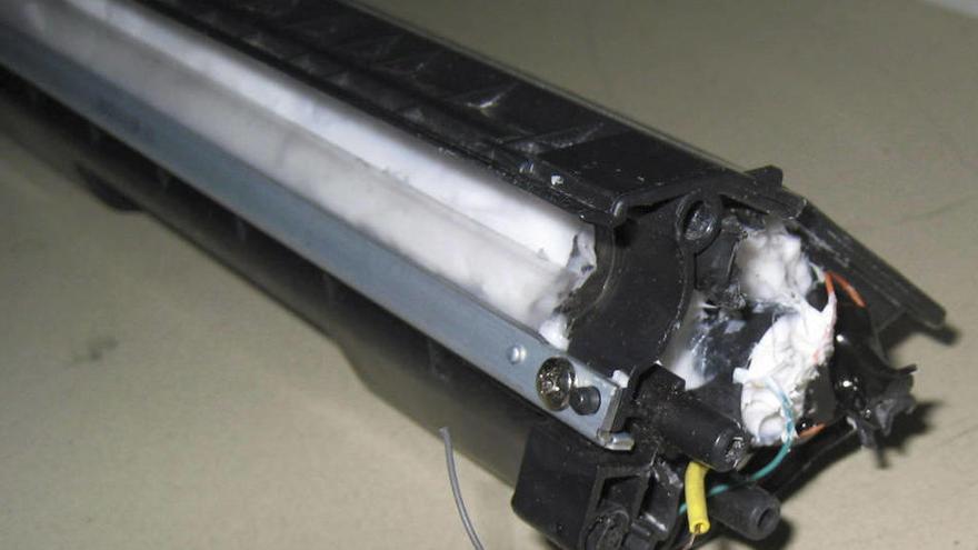 Según un comunicado de la Policía de Dubai, el material explosivo estaba colocado en el cartucho de tinta de una impresora que tenía además un teléfono móvil conectado y oculto en el aparato.