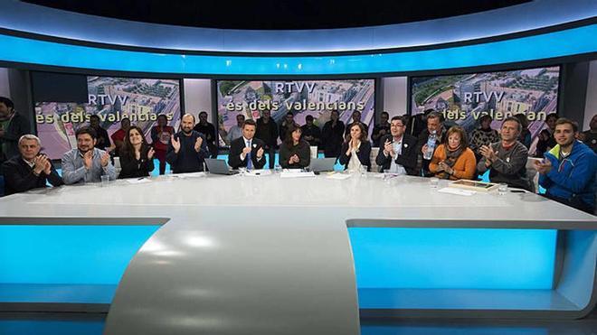 Junto a ellos y casi un centenar de trabajadores que arropaba a los presentadores en el estudio, estaban los diputados socialistas Josep Moreno y Juan Soto, los de Compromís Enric Morera, Mónica Oltra y Mireia Mollà, y los de EU Marga Sanz, Ignacio Blanco y Esther López.