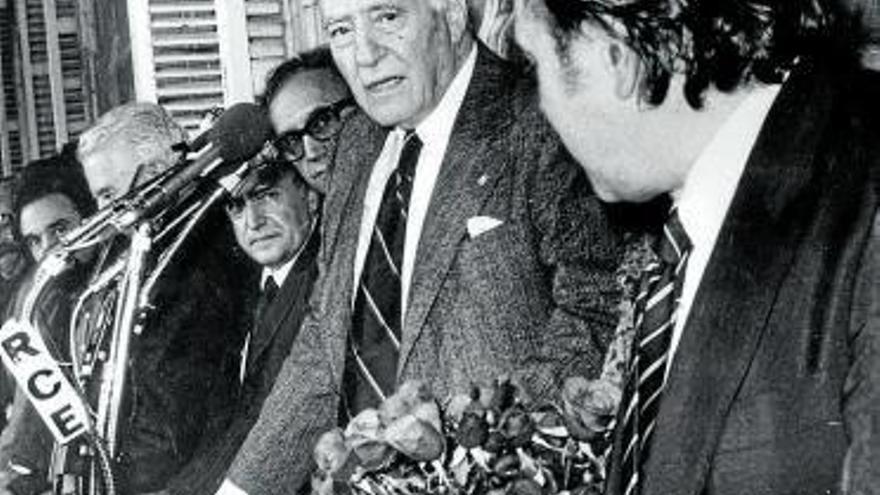 Y el 23 de octubre de ese mismo año, Tarradellas salió de París con destino a Madrid. Visitó primero el Palacio de La Zarzuela, para hablar con el rey Juan Carlos, y luego el Palacio de la Moncloa. Ese día, Tarradellas salió al balcón de la plaza de Sant Jaume, y a la jornada siguiente tomó posesión como presidente de la Generalitat y formó un Gobierno de unidad (centro-derecha, socialistas y comunistas) cuya tarea primordial fue negociar el traspaso de competencias de la Administración Central a la Generalitat provisional mientras se aprobaba el nuevo Estatuto, tras lo cual se retiró. - D.N.
