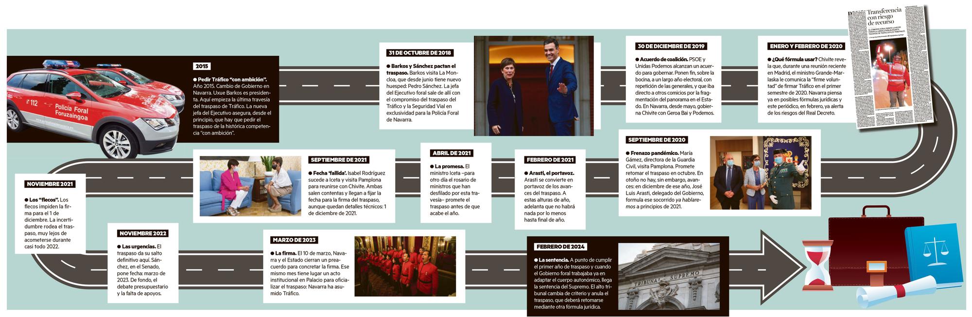En 2015 llegó otro impulso: Uxue Barkos dijo que había que defender la transferencia “con ambición” y en octubre de 2018 Sánchez le prometió por fin el traspaso. Ahí empieza el último capítulo que queda detallado en el laberinto de la transferencia que ilustra estas páginas.