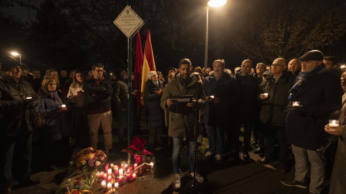 Para ello, a lo largo del día se han ido colocando velas encendidas en torno a un belén en la Vuelta del Castillo de Pamplona, en el lugar donde el 23 de diciembre de 1985 la banda terrorista acabó con la vida del general Atarés, de 67 años, al que dos miembros del Comando Nafarroa mataron de tres disparos a la salida de su casa.