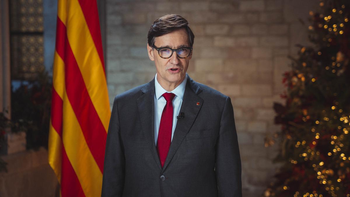 El president de la Generalitat, Salvador Illa, ha apelado a los “valores humanos” como la solidaridad, la empatía y la humanidad para “acoger e integrar” a todas las personas que lo necesiten, durante su tradicional mensaje de Navidad y Sant Esteve desde la Galería Gótica del Palau de la Generalitat.