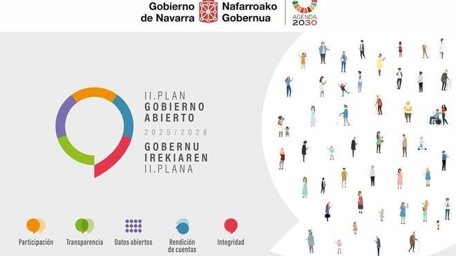 El II Plan de Gobierno Abierto de Navarra 2025-2028 plantea 32 compromisos en torno a nueve objetivos estratégicos y seis esferas de trabajo, como son la transparencia, la participación ciudadana, los datos abiertos, la rendición de cuentas y la integridad, referida al compromiso ético de las instituciones.