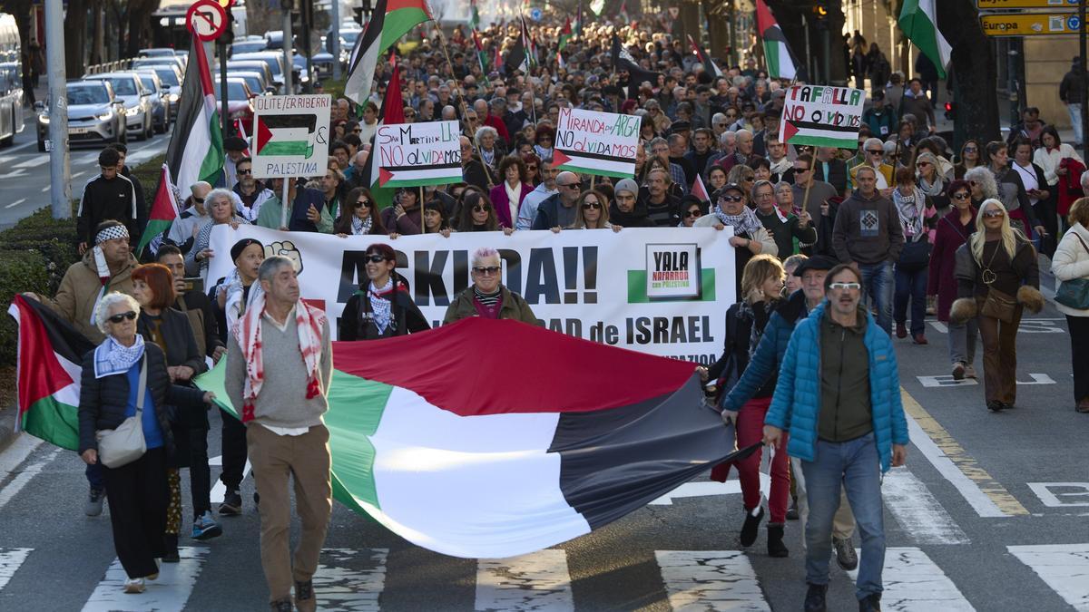 Desde Yala Nafarroa han señalado que sus reivindicaciones van más allá del Estado de Israel. También dirigidas a condenar "la complicidad de gobiernos y empresas que se están lucrando con el genocidio".