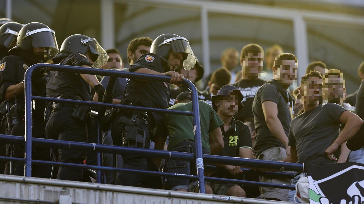 Partimos de que todo lo que ocurrió tras el partido del sábado fue raro. El detonante fue el lanzamiento de una botella de agua vacía, sin tapón y arrugada –según el acta del partido– al terreno de juego. No es un hecho tan raro en el fútbol profesional y los clubes tienen previstos unos protocolos que funcionan bien y son efectivos. Lo que suele pasar en El Sadar es que la videovigilancia localiza al autor del lanzamiento. Al finalizar el partido, personal de seguridad apoyado por la policía inicia un seguimiento del sospechoso, al que suelen identificar y proponer para sanción ya lejos del estadio, para evitar que una actuación policial a destiempo pueda generar una tensión innecesaria en un evento que concita a más de 23.000 personas.
