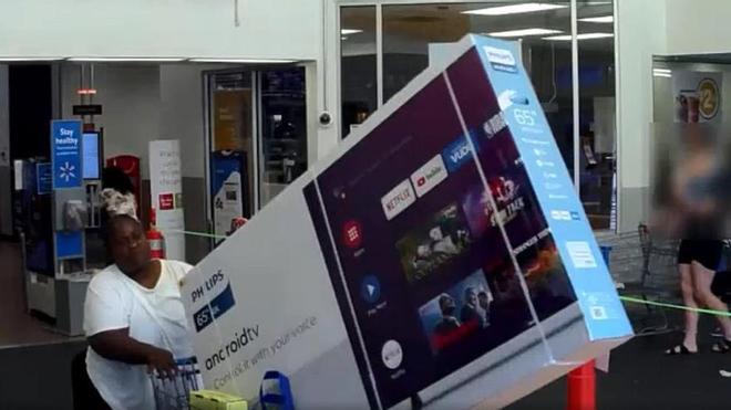 EEUU- La Policía del Condado de Polk (Florida) está en busca de dos mujeres que se llevaron diversas mercancías de una tienda de Walmart, entre ellas un televisor de 65 pulgadas. Una de ellas salió con un carrito en el que, además del voluminoso dispositivo, había varios otros artículos, por ninguno de los cuales había pagado. Entre tanto, la otra tomó las mercancías más pequeñas, las puso en su auto, y ambas se fueron en el coche. Solo no pudieron coger el televisor.